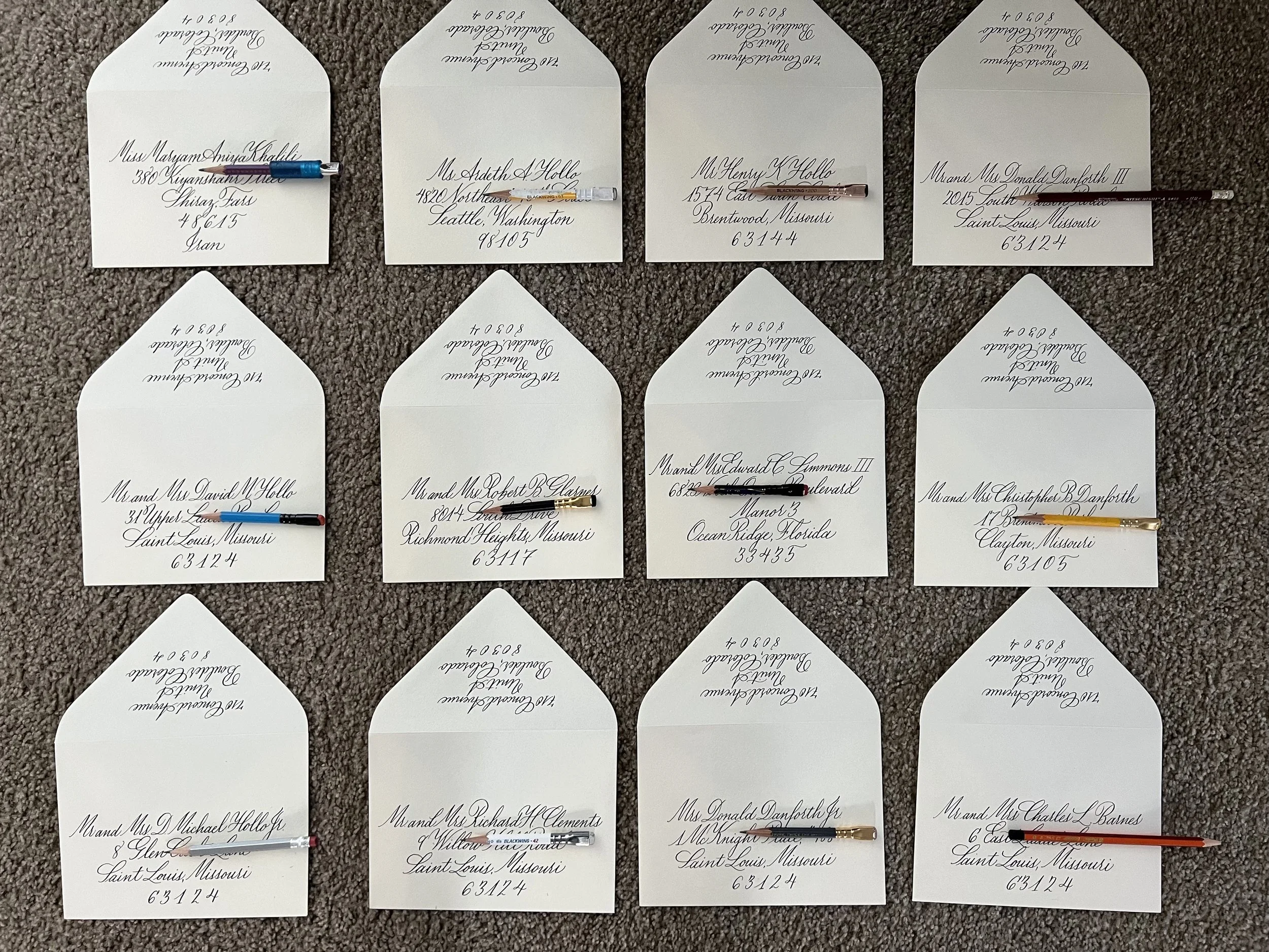 My Services Handwritten Quotes Logo and Monogram Design Engraving and Live Events CONTACT ME! My Services Calligraphy Class Instructor & Podcast Guest CONTACT ME! Envelope Addressing and Wedding/Event Services Custom Cards Cursive and Handwriting Instruction In-Person or Virtual CONTACT ME!